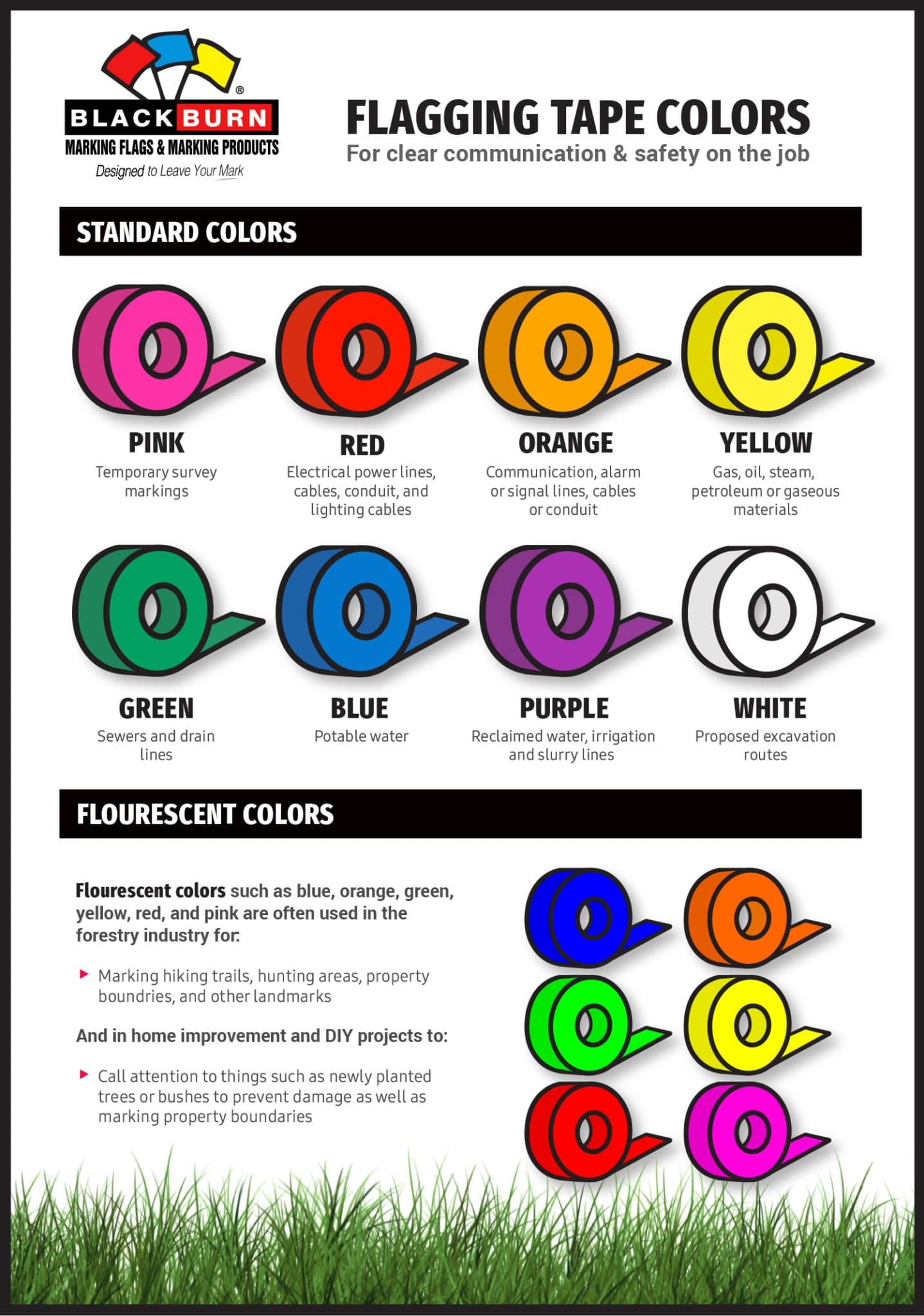 Detectable underground marking tapes are manufactured for the highest visibility in all types of soil conditions. APWA Color-Coded diagonal warning stripes are printed along with big, bold, black lettering to identify what type of utility line is buried below. These meet or exceed all industry standards.